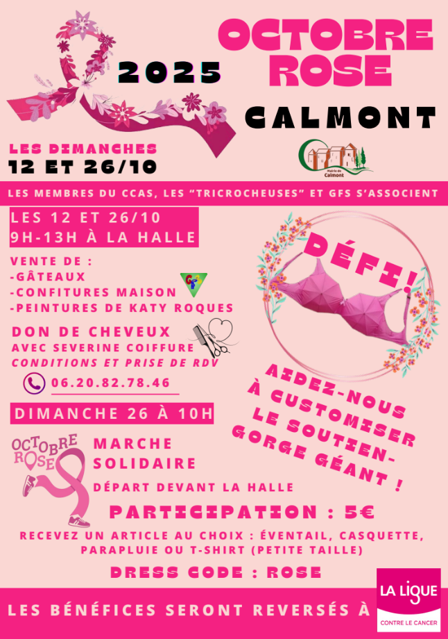 Comme chaque année, CALMONT se mobilise dans le cadre d'Octobre Rose pour récolter des fonds en faveur de la lutte contre le cancer du sein. 🫶