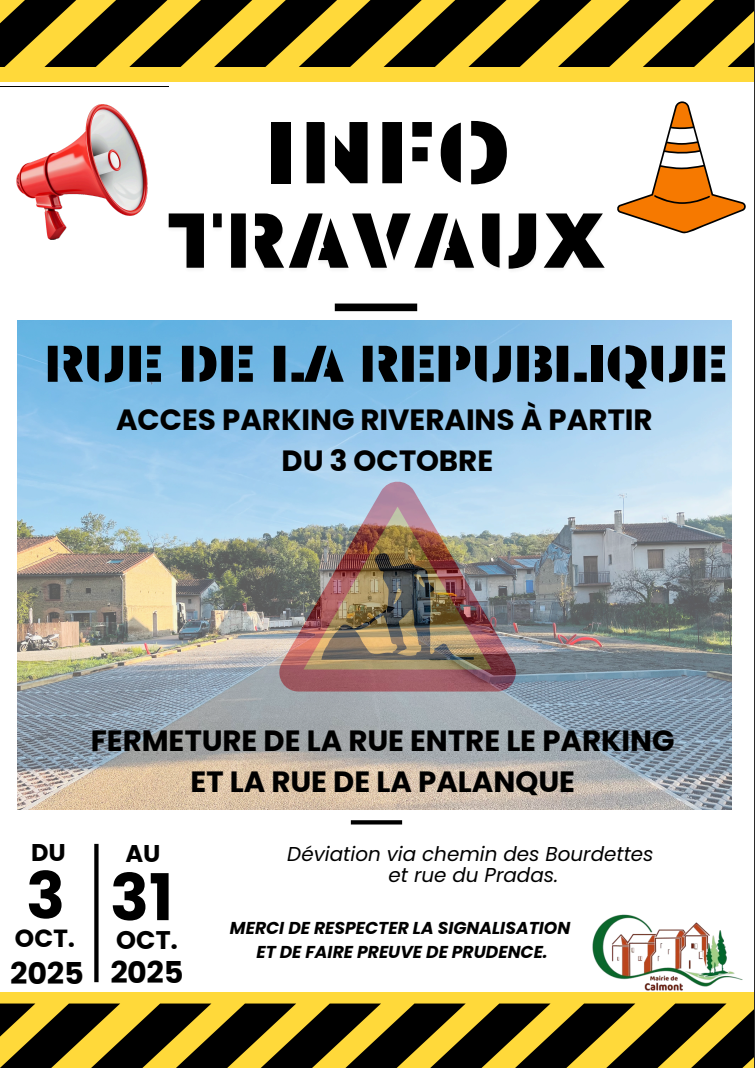 🚧 La 2nde partie de la rue, jusqu'à l'intersection avec la rue de la Palanque, reste fermée à la circulation jusqu'au 31/10. ⛔️