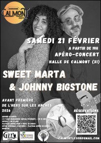 Sam.21 : 19h : apéro concert "Sweet Marta et Johnny Bigstone". Avant-première du festival "de l'Hers sur les Anches". Sur réservation. Asso. Calmont'Le Son.