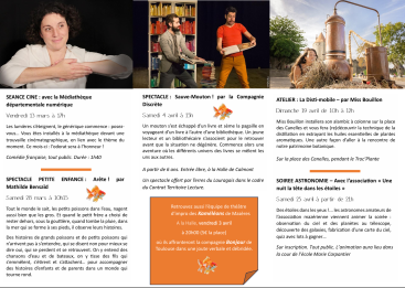 - dès 19h : soirée astronomie avec l'association "Une nuit la tête dans les étoiles". Sur inscription auprès de la Médiathèque. Tout public.